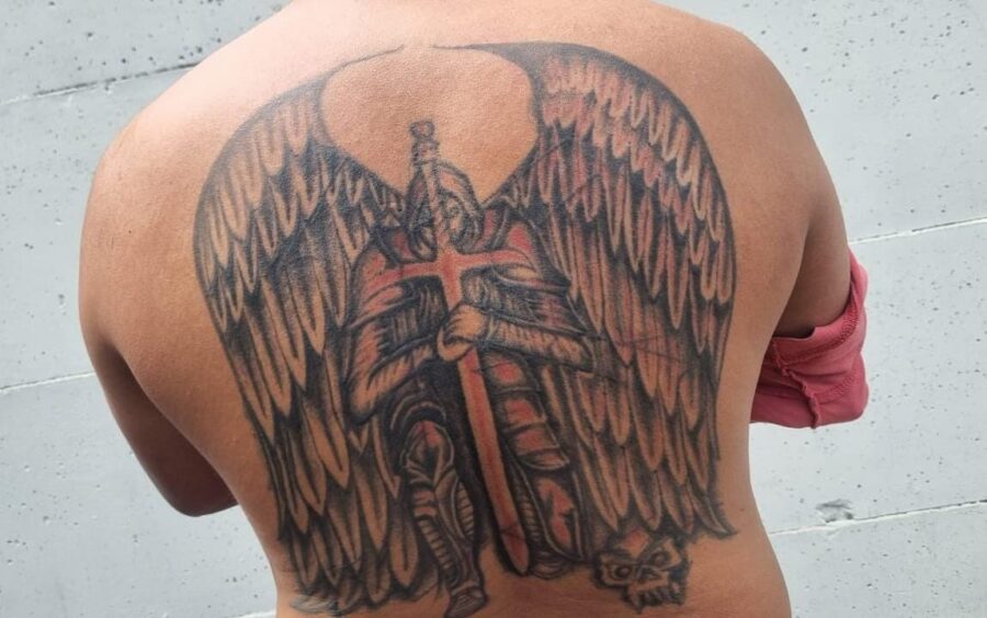 «Este terrorista intentó ocultar un tatuaje con un número 18 en su espalda por uno artístico, pero fue en vano», informó la PNC.