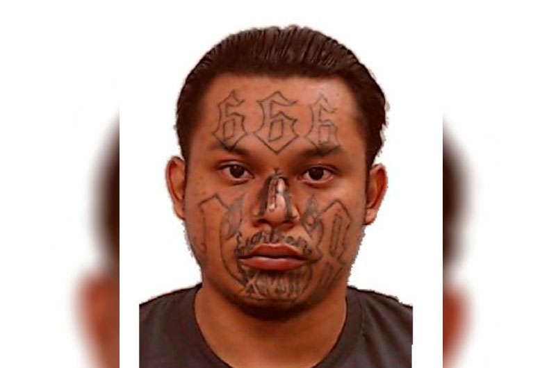 El cuenta con tatuajes en su rostro que lo vinculan a la pandilla Barrio 18, según la imagen difundida por el Departamento de Seguridad Nacional estadounidense.