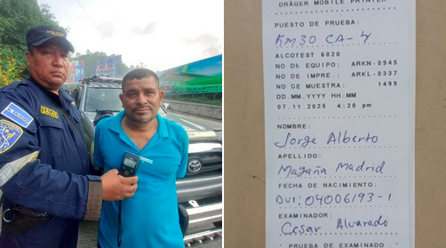 La Policía Nacional Civil arrestó a Jorge Alberto Magaña, de 47 años, quien conducía en estado de ebriedad sobre el kilómetro 30, cerca de la curva El Papaturro, hacia el Puerto de La Libertad.