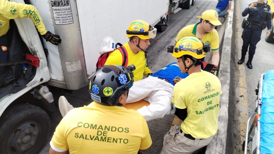 Un cuádruple accidente de tránsito dejó al menos una persona atrapada en la cabina de un camión sobre la carretera Troncal del Norte, este martes, informó Comandos de Salvamento que acudió al rescate de la víctima.