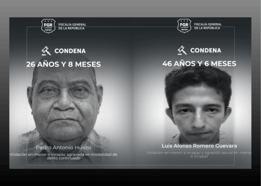 La Fiscalía General de la República (FGR) informó sobre las condenas dictadas a Luis Alonso Guevara y Pedro Antonio Huezo por delitos sexuales cometidos contra menores de edad.