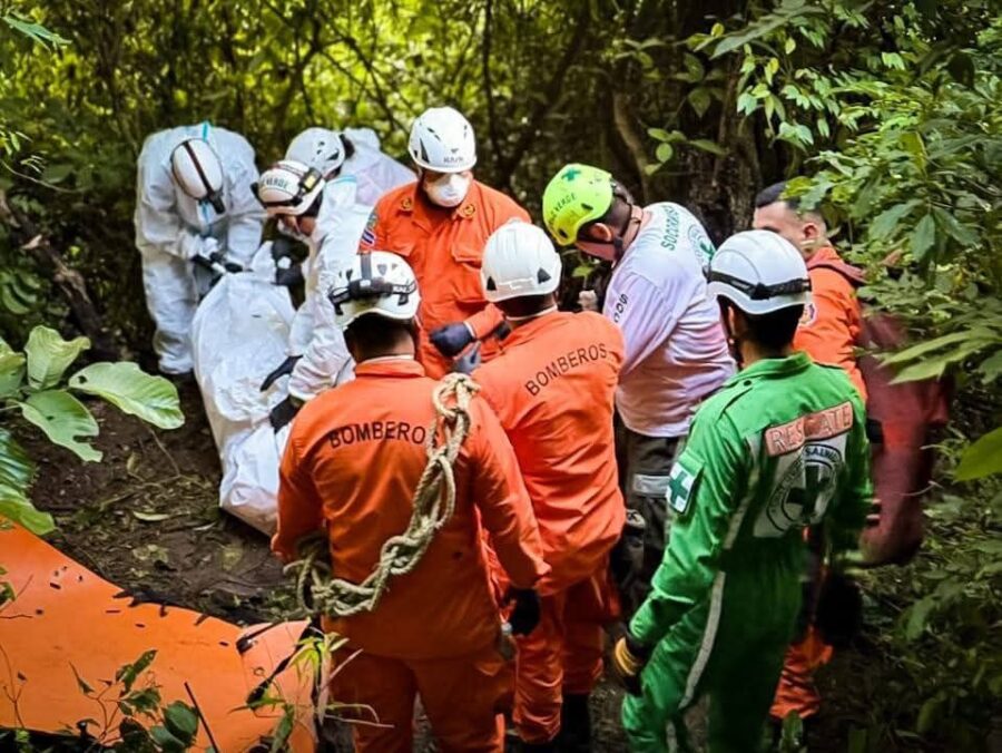 La recuperación del cuerpo se realizó entre elementos de la Unidad de Rescate de Cruz Verde Santa Anita y Bomberos de El Salvador, debido a que es una zona de difícil acceso.