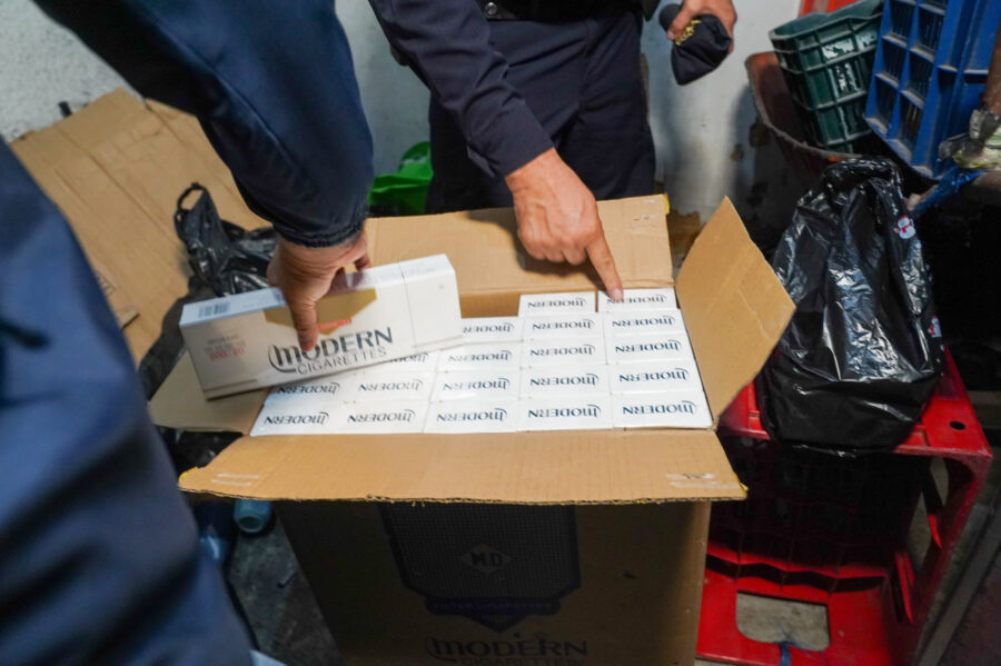 Las fotografías divulgadas por la FGR apuntan a que dentro de uno de estos lugares se encontraron cigarrillos de la marca “Modern”, los cuales no están autorizados para venderse en El Salvador.