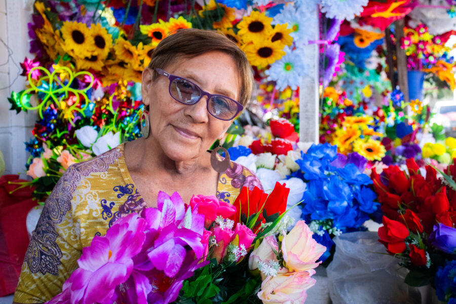 A unos pasos, Beatriz Hernández muestra orgullosa los coloridos arreglos que ofrece a precios accesibles. “Hay desde un dólar hasta crucitas de $2.50”, explica, mientras acomoda girasoles, claveles, anturios y corazones chinos de vivos tonos. Cada diseño, elaborado con paciencia, busca transmitir el afecto que las familias expresan en estas fechas, una forma de decir: “Te recuerdo” sin palabras.