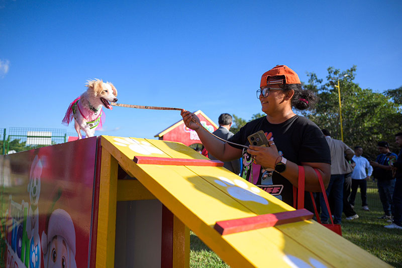 Todos los perritos que asistieron a la inauguración lo hicieron con correa para garantizar su seguridad. Los primeros asistentes fueron los perritos resguardados en el refugio municipal, quienes aún esperan un hogar.