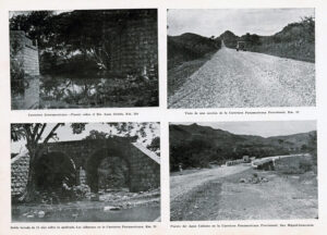 Cuatro fotografías de la construcción de la versión provisional de la Carretera Panamericana.
