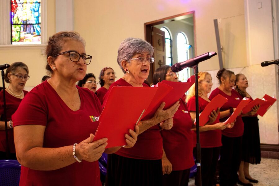 En la actividad también participó coro conformado por personas de la tercera edad del Centro Integral María Álvarez de Stahl, quienes fueron los encargados de cantar los villancicos durante la eucaristía.