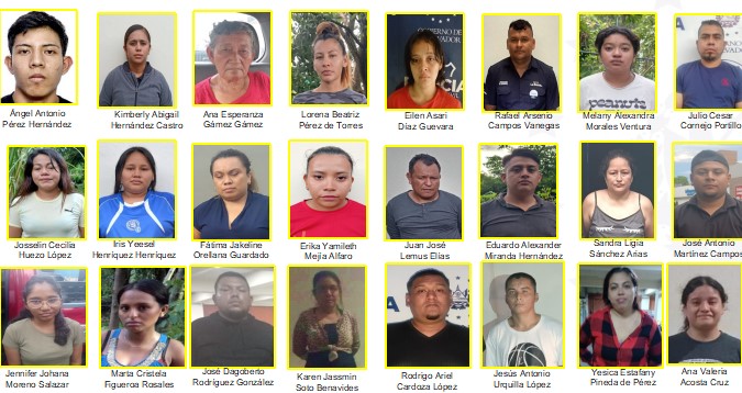 Según un comunicado de la Fiscalía, además de los 124 procesados en prisión, también fueron acusados 32 personas ausentes, entre estos, siete de nacionalidad colombiana, un venezolano, dos guatemaltecos y otros 22 salvadoreños.