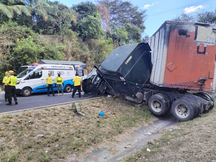 Una rastra con placas guatemaltecas se accidentó la tarde de este jueves en la carretera de Oro, en la jurisdicción de Ciudad Delgado, en San Salvador Este, informó Comandos de Salvamento.