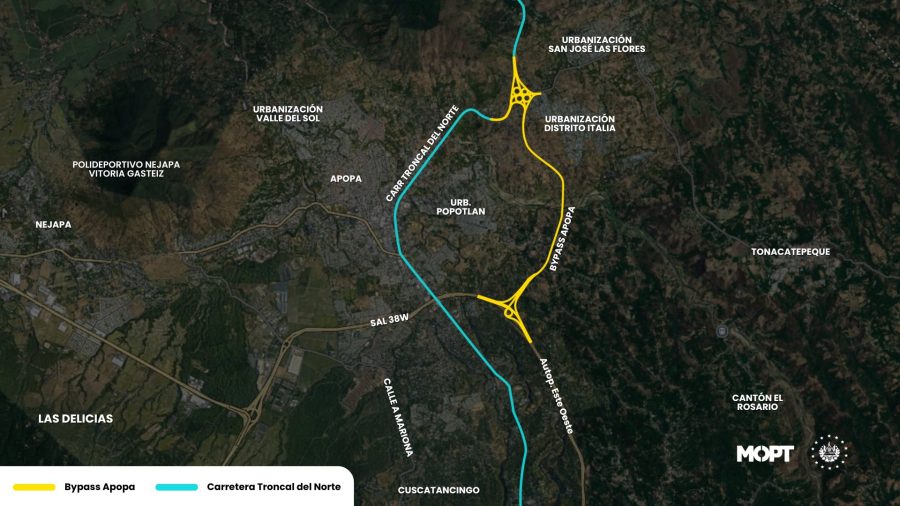 El bypass de Apopa es un proyecto que tendrá 4.8 kilómetros de longitud y tendrá 12 puentes, entre ellos, un atirantado a cuatro carriles y será «el de mayor longitud» del país.