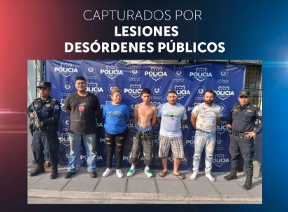 Los detenidos fueron identificados como Luis Alexander Campos Rauda, Jaqueline Lisbeth Alfaro Marroquín, Michael Jeremías Borja Efigenio, Jorge Amilcar Mazariego Marroquín y Edwin Alexander Beltrán Escobar, todos ellos serán acusados de los delitos de lesiones, mientras que el último en el listado será acusado de desórdenes públicos.