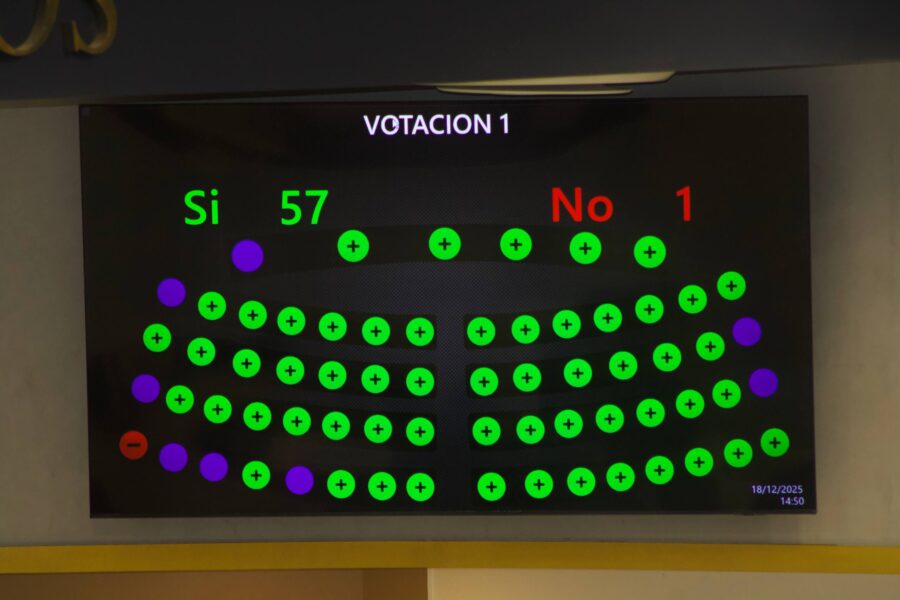 La «Ley de presupuesto general del Estado y de presupuestos especiales para el ejercicio fiscal 2026» fue aprobada con 57 votos de Nuevas Ideas y sus aliados. Claudia Ortiz, de Vamos, votó en contra. La votación se realizó a las 2:50 p.m. de este jueves.