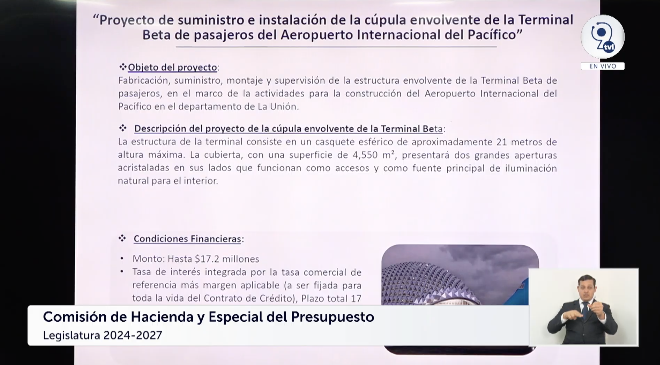 La Comisión de Hacienda de la Asamblea Legislativa aprobó este lunes el dictamen favorable 144 para aprobar que el Estado sea el garante de un préstamo que adquirirá la Comisión Ejecutiva Portuaria Autónoma (CEPA) para fabricar, suministrar y realizar el montaje de una “estructura envolvente” en la Terminal Beta de pasajeros en el Aeropuerto Internacional del Pacífico en el departamento de La Unión.