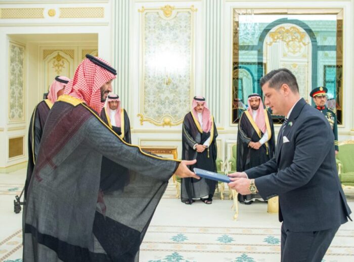 Embajador salvadoreño Ricardo Cucalón Levy presenta sus credenciales al príncipe de Arabia Saudita