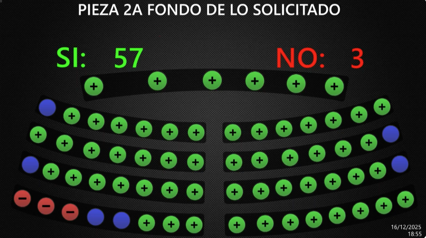 La dispensa de trámites y la ratificación de la reforma constitucional al artículo 208, sobre el TSE, fue aprobada con 57 votos y 3 en contra, de Arena y Vamos.