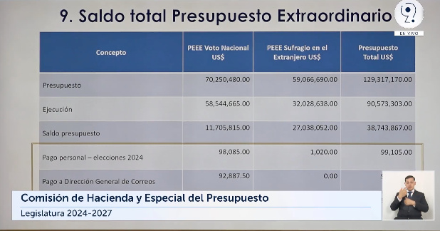 También, detalló que cancelaron un total de $11 millones a un «tercero contratado»; según la presentación, este pago se hizo a una empresa «que desarrolló e implementó el sistema de votación en el extranjero».