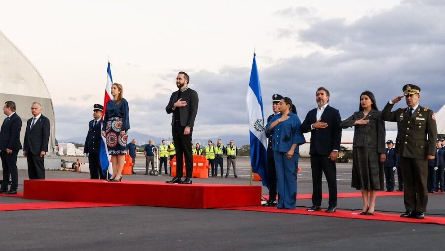 La recepción, que incluyó la entonación de los himnos nacionales de Costa Rica y El Salvador, fue transmitida en la cuenta de YouTube y otras redes sociales de Nayib Bukele.