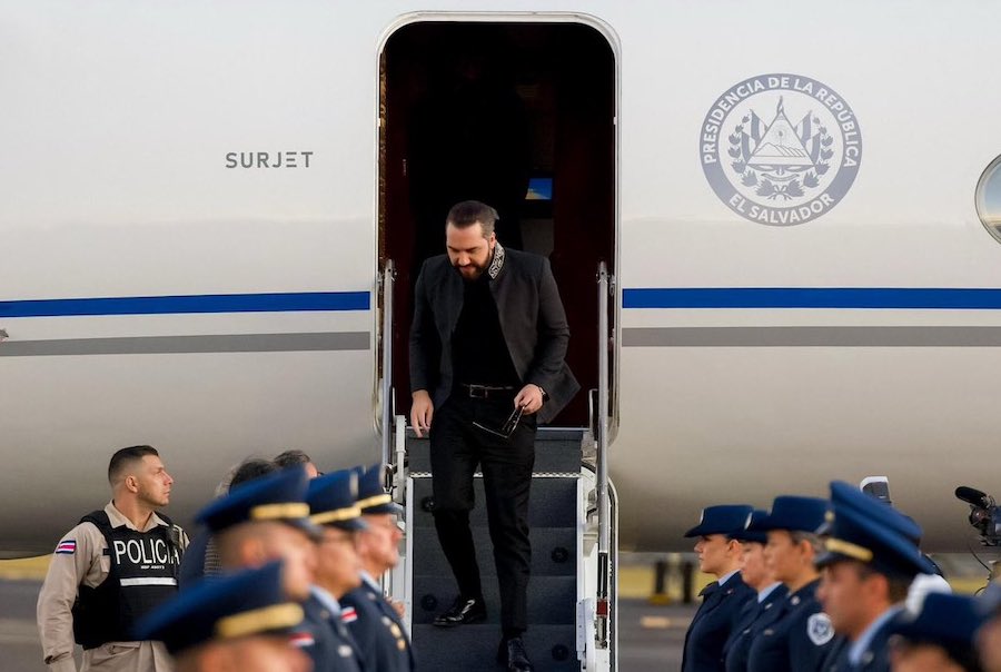 El presidente Nayib Bukele en su arribo a Costa Rica. / Presidencia.