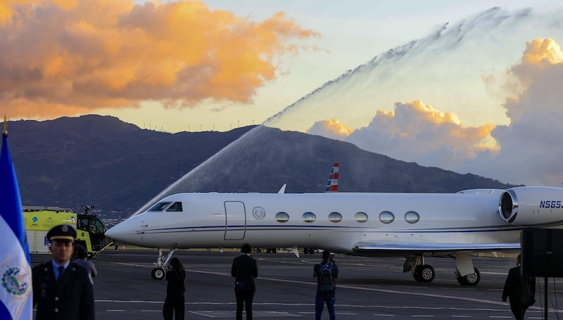 El avión en el que viaja el presidente salvadoreño. / Presidencia.