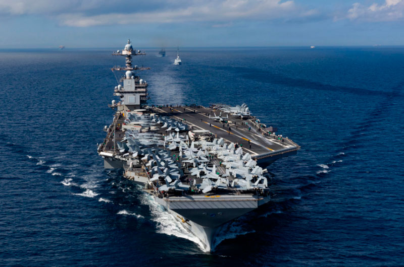 Entre agosto y octubre, la cifra de buques desplegados pasó de dos o tres a unas diez unidades —incluidos destructores, barcos anfibios y submarinos—, y con la llegada del portaaviones USS Gerald R. Ford el movimiento naval prácticamente se duplicó respecto al nivel previo.