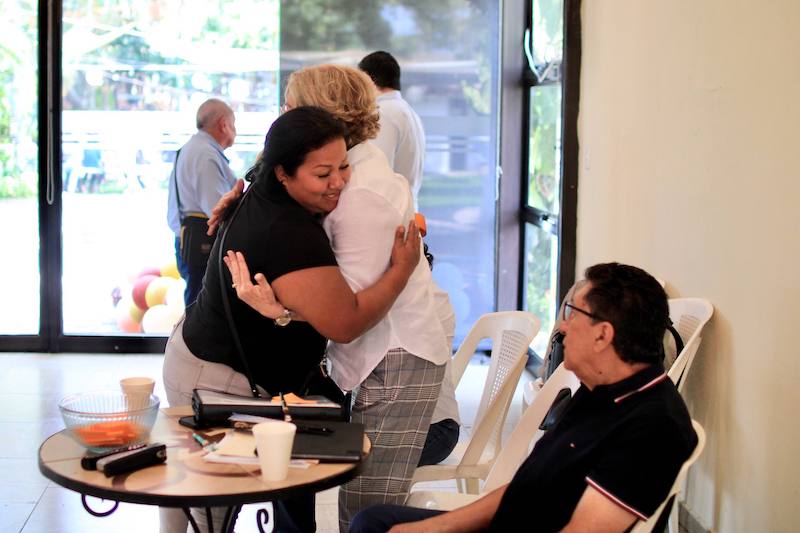 El odontólogo salvadoreño estadounidense Óscar Armando Góchez y su esposa Joni Góchez, propietarios de tierras que ocuparon integrantes de la comunidad en la Hacienda La Floresta, entregaron este sábado aproximadamente 20 contratos para donar parcelas a algunas de las familias que fueron afectadas por supuestas estafas.