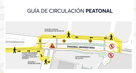 Hasta este lunes, únicamente la CSJ reportó que los sectores peatonales que rodean la Diagonal Universitaria, con rumbo al estacionamiento de la CSJ y el Centro Judicial Integrado de Derecho son las zonas habilitadas para el ingreso peatonal, junto al acceso hacia Medicina Legal.
