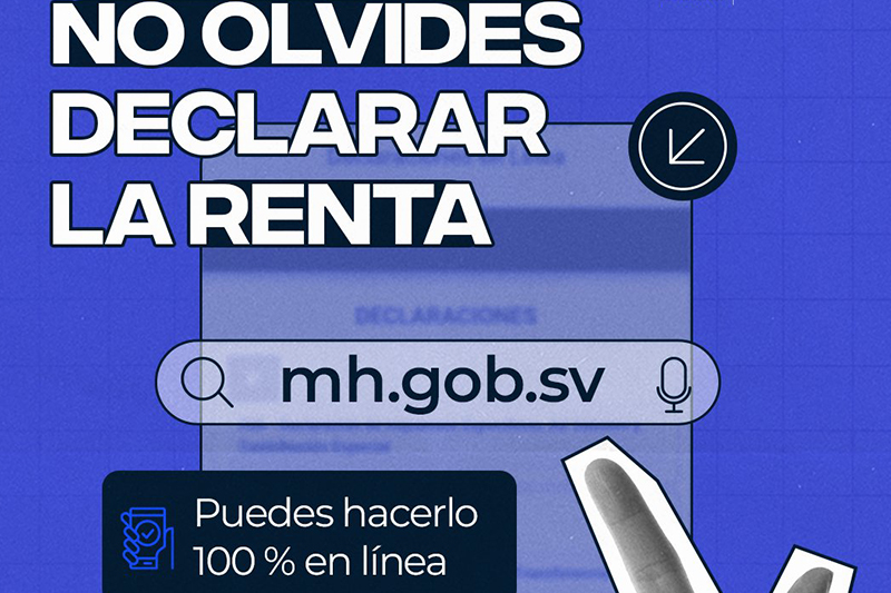 Los salvadoreños tienen hasta el 30 de abril para presentar la declaración del Impuesto Sobre la Renta (ISR) correspondiente a 2025, indicó el Gobierno a través de redes sociales.