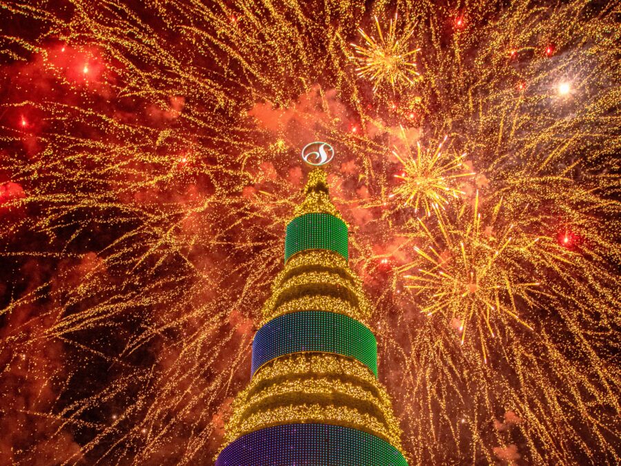 Cientos de salvadoreños llegaron la noche de este viernes a la Plaza del Divino Salvador del Mundo, en San Salvador, a presenciar la encendida del árbol instalado por la panadería San Martín, en coordinación con la alcaldía de San Salvador Centro.