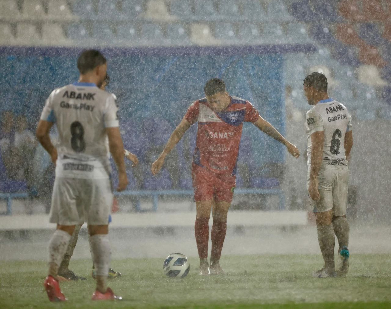 A pesar de la lluvia, el campo de juego aguantó la primera mitad. Sin embargo, las fuertes precipitaciones provocaron pequeños encharcamientos, lo que llevó a la suspensión del partido por la seguridad de los jugadores.