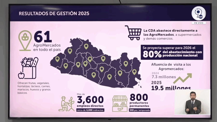 El Ministerio de Agricultura y Ganadería (MAG) prevé que el 80 % de los insumos comercializados en los agromercados en 2026 proceda de la producción salvadoreña.