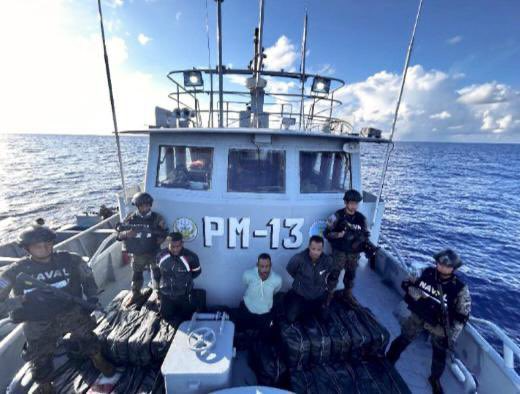 Según el informe judicial, la operación de patrullaje se realizó a 530 millas náuticas al sur de la bocana El Cordoncillo, donde los efectivos localizaron una lancha de bajo perfil con tres tripulantes. Al inspeccionarla, hallaron 64 bultos que contenían un total de 1,280 kilogramos de cocaína.