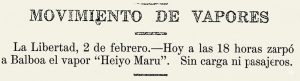 Por unas horas, el Heiyō Maru tiró el ancla en el puerto de La Libertad, del que zarpó “sin carga ni pasajeros” con rumbo hacia la localidad panameña de Balboa (donde solía entregar cargamentos de cemento), como lo consignó el Diario Oficial (San Salvador, tomo 112, no. 28, miércoles 3 de febrero de 1932, p. 173). Por el contexto nacional e internacional predominante, esa experiencia de venta de boletos y de embarque de mercaderías en una nave japonesa se constituyó en un fracaso rotundo para la naciente dictadura del brigadier Maximiliano Hernández, que consolidaría sus vínculos con el Imperio del Sol Naciente en los años venideros. Aun así, no habría otra visita de un barco nipón a la costa salvadoreña hasta más allá de la entrada en vigor del tratado de paz de 1951, que puso fin al estado de guerra entre ambas naciones decretado la mediodía del lunes 8 de diciembre de 1941.