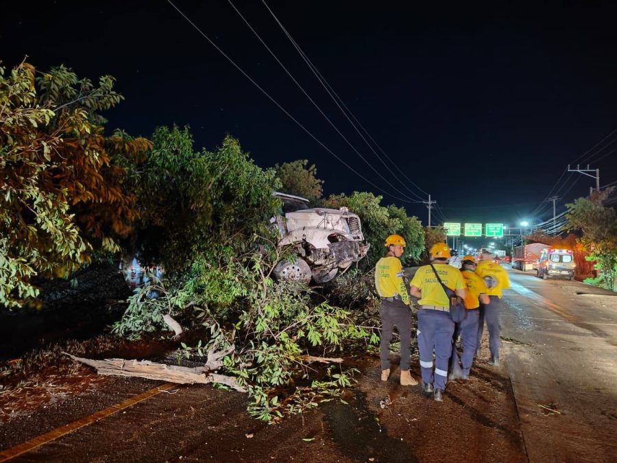 Por otro lado, brigadas de Comandos de Salvamento reportaron que un árbol cayó sobre un vehículo en la calle al distrito de Victoria este miércoles por la noche en el departamento de Cabañas. La entidad, que notificó la emergencia por medio de su cuenta de Facebook, no reportó personas lesionadas.