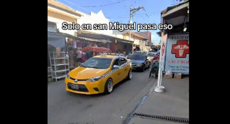 El VMT compartió un vídeo publicado por la página «Sivar news» en el que una persona grabó el momento en que un taxi estaba parqueado en un calle estrecha, por lo que ningún otro vehículo podía pasar y la cola se alargó por automotores que querían transitar por la zona.